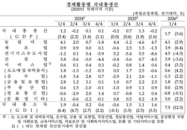 2026년 1분기 GDP 1.7% 급등, 2020년 3분기 이후 최고치