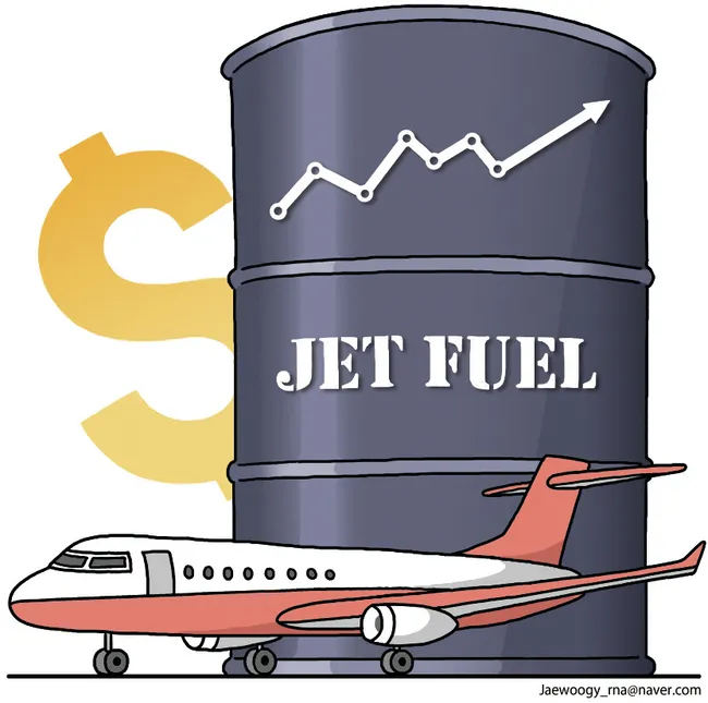 항공유는 극한 환경에서 사용되기 때문에 정제 비용이 일반 휘발유보다 훨씬 비싸다. 원유값이 배럴당 100달러 기준일 때 항공유는 30~40달러 더 비싸며, 국제 시장에서 전량 달러로 거래되기 때문에 고환율 상황에서 국내 항공사의 구매 부담이 가중된다.