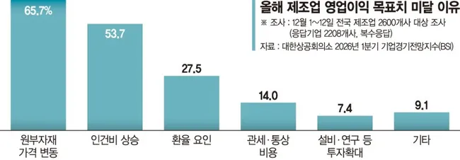 AI 데이터센터 확산으로 반도체 기판, 전선, 변압기 등의 수요가 폭증하면서 핵심광물 가격 상승을 부채질하고 있다. 대한상공회의소 조사에서 기업 65.7%가 영업이익 미달의 주요 원인으로 원부자재 가격 변동을 꼽았다. 중소기업들은 대기업 대비 협상력이 낮아 부담이 더욱 크다.