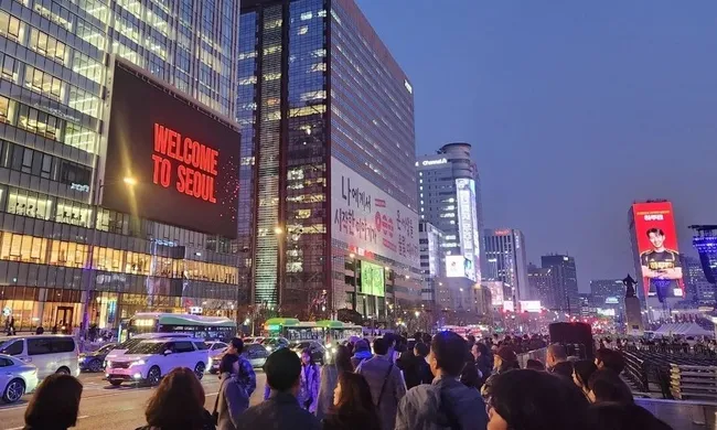 BTS 보라색으로 물든 광화문의 밤…“표가 없어도 행복”