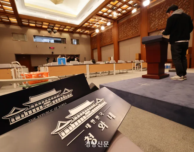 경향신문이 지난 한 주(12월 22~26일) 동안 게재한 1면 사진 5장을 통해 한국 정치의 주요 변화를 담아냈다. 용산 대통령실에서 청와대로의 이전, 여야의 통일교 특검 논의, 해양수산부의 부산 이전, 명동성당의 크리스마스 미디어파사드, 북한의 핵잠수함 건조 현지 지도 등이 선정됐다.