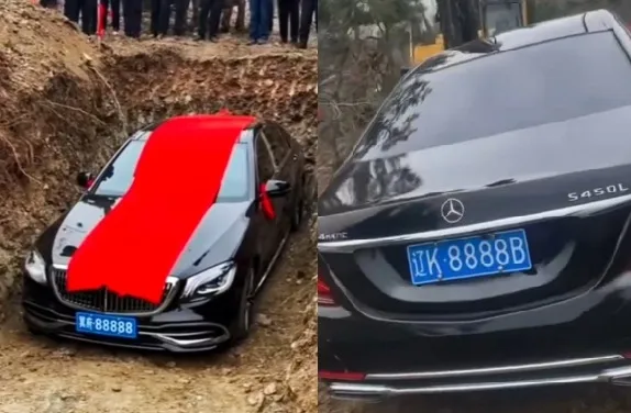 중국 랴오닝성 랴오양시의 한 마을에서 70대 노인의 장례식에 약 110만 위안(2억3000만원) 상당의 메르세데스-벤츠 S450L 차량을 실제로 매장해 논란이 일었다. 차량에는 길조로 여겨지는 번호판 '8888'이 달려 있었으며, 가족들은 고인의 영혼이 평안히 떠나기를 바라는 마음에서 이를 행했다고 밝혔다.
