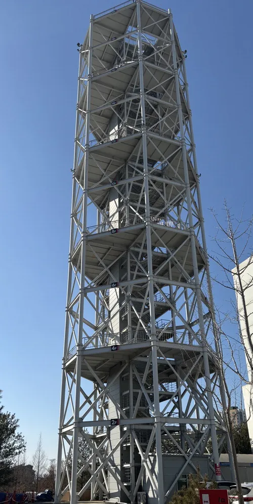 파이프 제조 중견기업 PPI평화가 충북 진천의 높이 60m 배수시험타워에서 고층 아파트의 화장실 악취 문제를 해결하는 '무통기 에어드레인 시스템'을 시연했다.