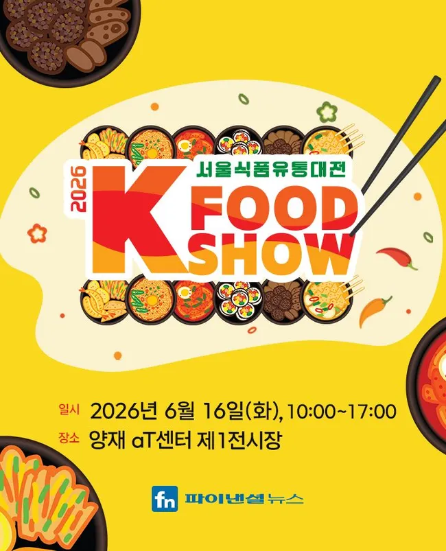 파이낸셜뉴스가 6월 16일 서울 서초구 aT센터에서 '2026 서울식품유통대전'을 개최한다. 올해 3회째를 맞은 이번 행사는 'K분식, 세계의 식탁으로'를 주제로 분식·프랜차이즈·식자재 등 K푸드 전 분야를 다룬다.