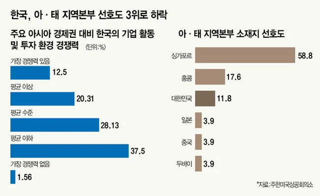 중대재해처벌법과 산업안전보건법 등 기존 제도와의 충돌 가능성도 제기되고 있으며, 주한미국상공회의소 조사에서 한국의 아시아 투자 매력도가 4년 연속 2위에서 3위로 하락했다. 전문가들은 의제별로 교섭 범위를 미리 정하고 상시 협의 채널을 구축해야 한다고 조언했다.