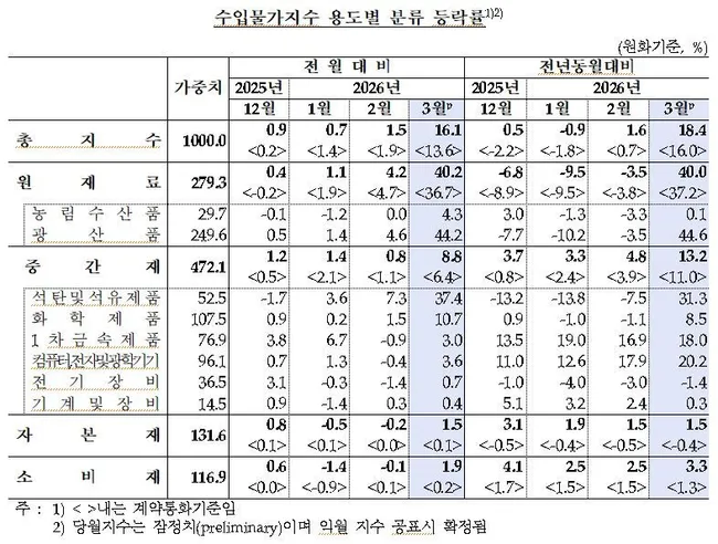 3월 원화 기준 수출물가지수는 전월 대비 16.3% 올라 1998년 1월 이후 28년 2개월 만에 최고치를 기록했다. 수입물가지수도 16.1% 상승하며 9개월 연속 동반 상승 행진을 이어갔으며, 국제유가 폭등과 반도체 가격 상승이 주요 원인으로 작용했다.
