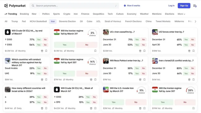 글로벌 예측 시장 플랫폼은 지난 1년간 440억 달러 이상의 거래액을 기록하며 급성장하고 있다. 폴리마켓에선 이란 전쟁 관련 베팅에만 5억 달러가 몰렸으며, 이란 최고지도자 실각 여부에 5400만 달러 규모의 판돈이 오가고 있다. 내부자 거래 의혹도 제기되며 미 의회는 예측 시장 규제 법안(BETS OFF Act)을 발의했다.