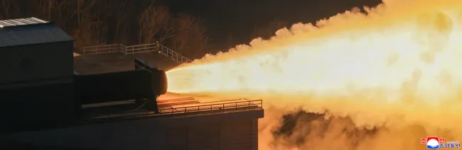 북한이 김정은 국무위원장이 참관한 가운데 ICBM에 활용될 신형 탄소섬유 고체 엔진 시험을 진행했다. 최대 추진력은 2500kN으로 지난해 9월 시험 당시보다 26.8% 증가했으며, 화성-20형 ICBM에 탑재될 예정이다.