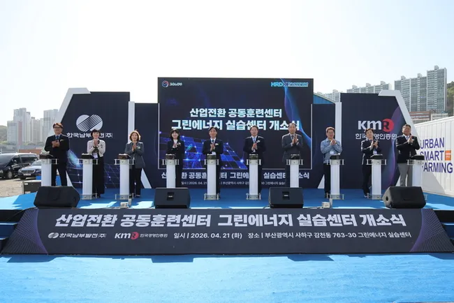 한국남부발전이 21일 부산 사하구에 '산업전환 공동훈련센터·그린에너지 실습센터'를 개소했다. 총 24억원을 투입해 태양광·스마트팜 설비를 갖춘 실습 시설을 완공했으며, 중소기업 재직자와 지역 주민을 대상으로 현장 중심 교육을 제공할 계획이다.