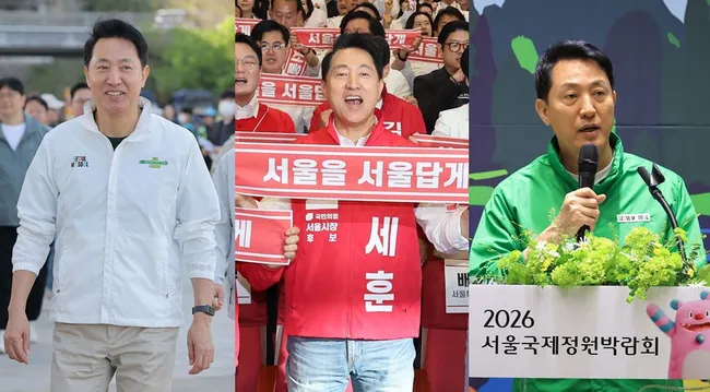 오세훈 국민의힘 서울시장 후보가 6·3 지방선거를 앞두고 흰색·빨간색·녹색 점퍼를 번갈아 입는 '쓰리톤 정치'를 펼치고 있다. 시민 접촉 시 흰색, 당원 행사에서 빨간색, 정책 강조 시 녹색을 선택하는 방식으로 상황별 이미지 관리를 하고 있다.