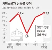 1분기 서비스물가 2.4% 상승, 4월 2.6~2.8% 전망