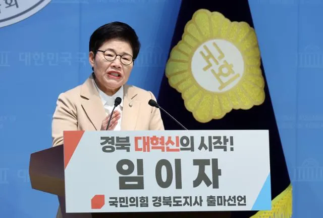 국민의힘 임이자 의원이 8일 국회 소통관에서 기자회견을 열고 6월 전국동시지방선거에서 경북도지사 출마를 공식 선언했다. 임 의원은 "경북은 강력하고 혁신적인 실행 리더십이 필요하다"며 "대혁신의 경북 시대를 만들겠다"고 밝혔다.