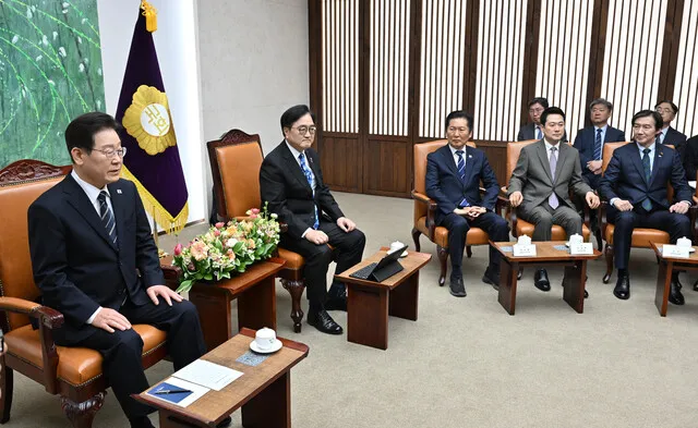 이 대통령은 "어려운 시기일수록 통합을 통한 힘을 모으는 대응이 중요하다"며 야당에 초당적 협력을 요청했다. 우원식 국회의장, 정청래 더불어민주당 대표, 장동혁 국민의힘 대표, 조국 조국혁신당 대표 등이 참석한 간담회에서 이 대통령은 "국가 미래와 국민의 삶이라는 목표 아래서 모두가 함께 힘을 모아달라"고 당부했다.