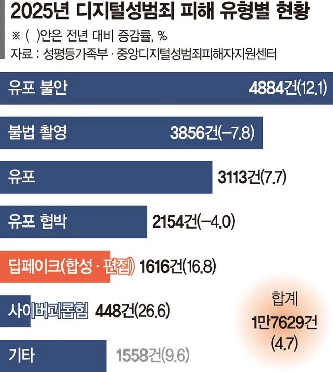 딥페이크·보이스피싱 등 AI 기반 범죄가 급속도로 증가하고 있다. 지난해 중앙디지털성범죄피해자지원센터가 접수한 디지털 성범죄는 1만7629건으로 전년 대비 4.7% 증가했으며, 딥페이크 등 합성·편집 피해는 16.8% 늘어났다.