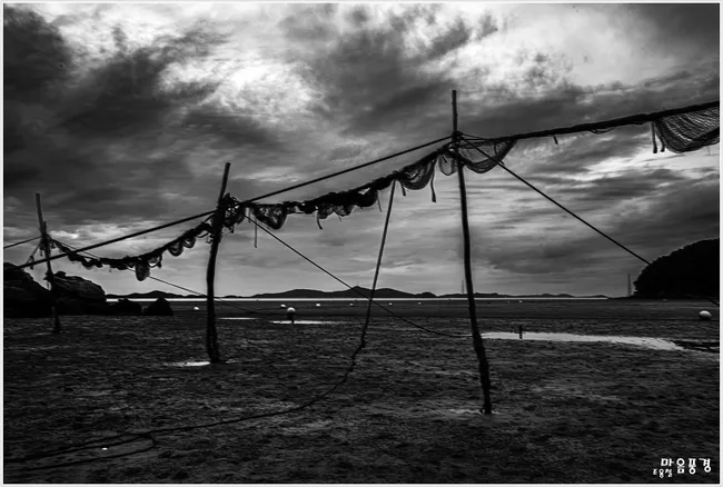 인천 강화군 석모도 민머루 해변에서 촬영된 갯벌 풍경이 부활절의 평화 메시지를 담아낸다. 바닷물이 빠져나간 갯벌 위의 먹구름과 십자가 이미지는 그리스도의 부활과 평화의 염원을 상징한다.