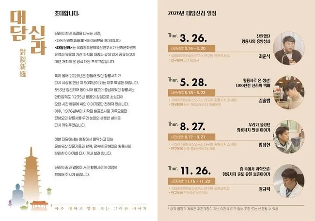 2018년부터 운영된 '대담신라'는 문화유산 현장 연구자들이 시민들과 직접 소통하는 프로그램으로, 신라 문화에 대한 대중의 이해를 높이는 데 기여할 것으로 예상된다.