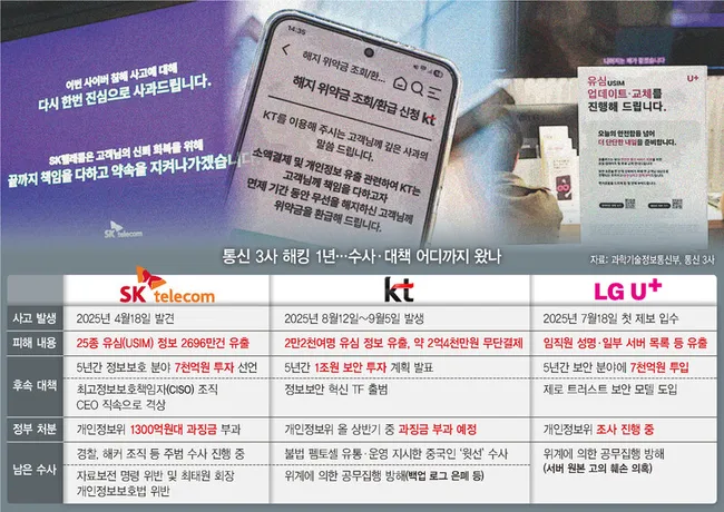 SK텔레콤·KT·LG유플러스 등 통신 3사가 사건 은폐 및 조사 방해 혐의로 수사받고 있으며, 정부는 한국인터넷진흥원에 특별사법경찰관 권한 부여를 추진 중이다.