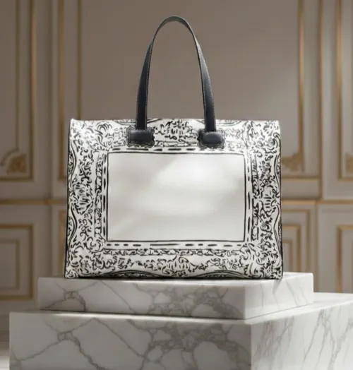 로고 중심 소비에서 벗어나 예술적 안목을 공유하는 '언스포큰 럭셔리' 개념을 제시한다. 작가의 붓 터치를 가죽 질감 컨버스 소재에 구현해 가방을 휴대 가능한 예술 오브제로 재정의했다.