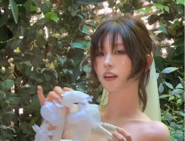 공개된 영상 속 최준희는 오프숄더 웨딩드레스에 연한 초록빛 베일과 초록색 스타킹을 매치하는 파격적인 스타일링으로 개성을 드러냈다. 전문 모델 못지않은 포즈와 올림 머리 스타일링으로 예비 신부의 행복한 에너지를 전달했다.