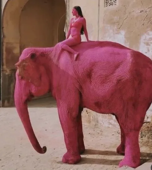 러시아 출신 사진작가 줄리아 부룰레바가 지난해 11월 인도 힌두 사원에서 65세 코끼리를 분홍색으로 칠해 촬영한 사진이 최근 온라인에서 확산되며 동물 학대 논란을 일으켰다.