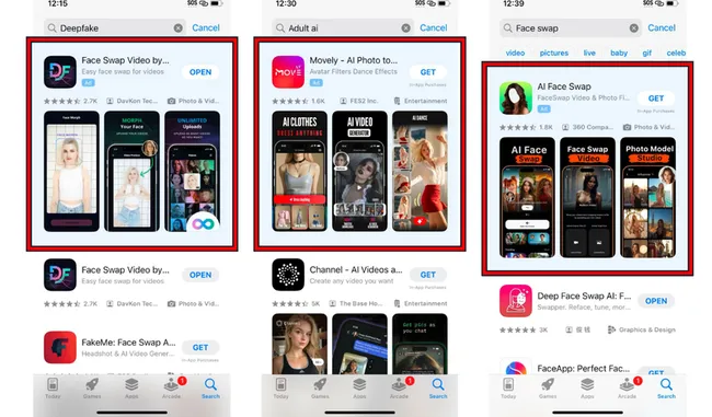 애플과 구글 앱스토어에서 사진의 옷을 제거하거나 얼굴을 합성해 음란 이미지를 만드는 누디파이 앱이 활발히 노출되고 있다. 정책상 금지된 지 3개월이 지났음에도 일부 앱은 전체 이용가 등급으로 분류돼 아동도 다운로드할 수 있는 상태다.