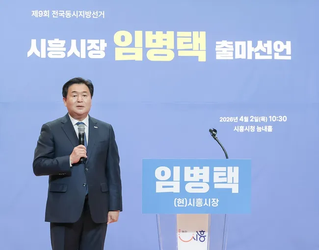 임병택 시흥시장이 2일 시흥시청에서 3선 도전을 공식 선언했다. 그는 지난 8년간의 시정 성과를 바탕으로 '연속성 있는 성장'과 '미래 산업 전환'을 핵심 기치로 내세웠으며, 시흥을 AI·바이오 중심 도시로 도약시키겠다는 구상을 밝혔다.