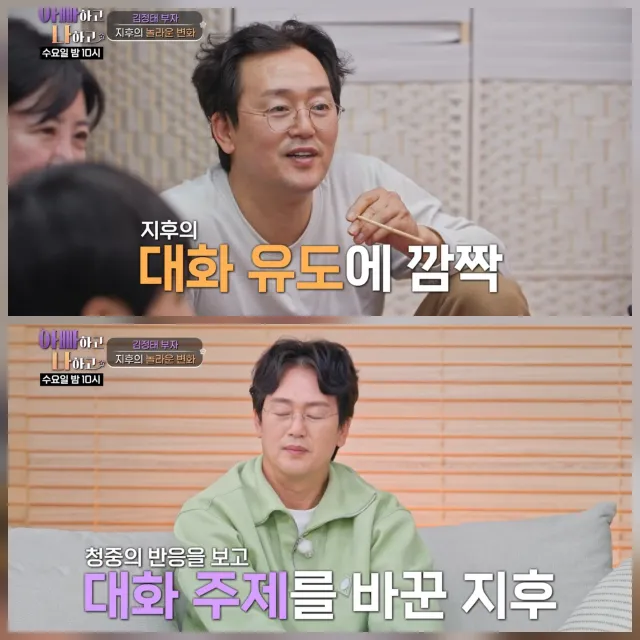 평소 혼자만의 시간을 선호하던 지후가 거실의 분위기를 살피며 먼저 참여를 제안하고, 친구들의 반응을 읽으며 질문을 던지는 등 공감 능력이 크게 향상됐다. 출연진 전현무는 '레크리에이션 강사 같다'며 감탄했고, 김정태도 '처음 보는 모습'이라며 아들의 변화에 감격했다.