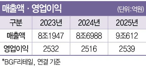 BGF그룹이 유통과 소재 부문에서 동시에 성장세를 이어가고 있다. BGF리테일의 지난해 매출은 9조612억원으로 전년 대비 4.2% 증가했으며, 영업이익은 2539억원으로 0.9% 늘었다. 이는 주요 오프라인 유통사 평균 0.4%, 편의점 업계 평균 0.1%를 크게 상회하는 수치다.