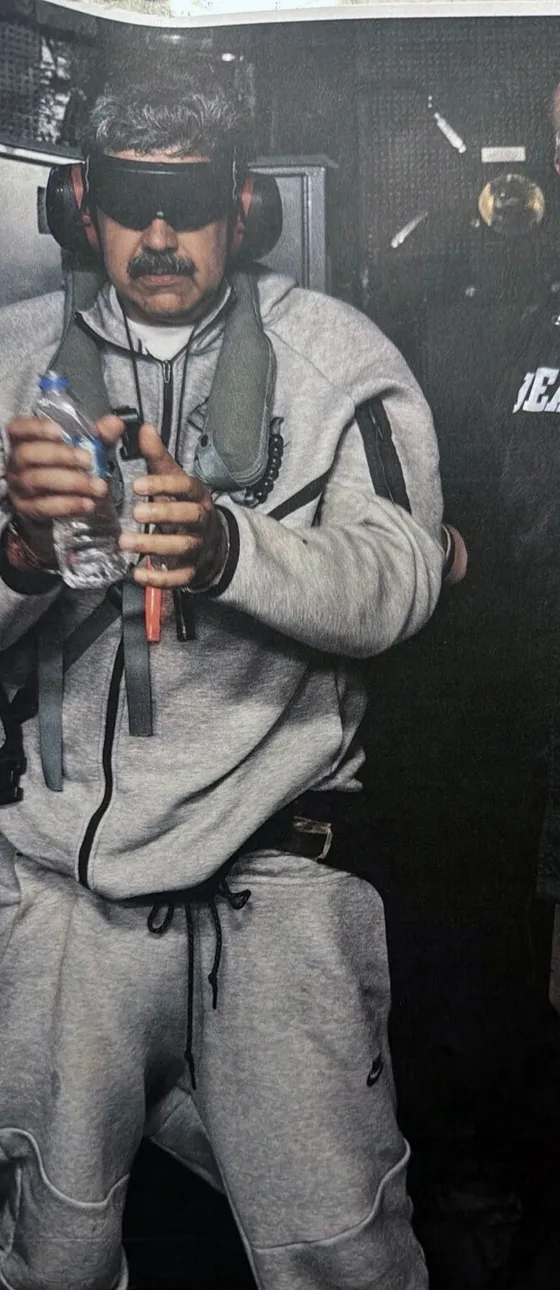 미군은 마두로 대통령을 안대와 헤드폰으로 눈과 귀를 가린 채 이오지마함에 탑승시켰다. 나이키 트레이닝복 차림의 마두로는 물병을 들고 있는 모습이 포착됐으며, 백악관이 관련 사진을 공개했다.