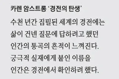 신간 '경전의 탄생'은 성경, 베다, 쿠란 등 세계 주요 경전들의 형성 과정과 문화적 배경을 다룬다. 저자 카렌 암스트롱은 창세기가 메소포타미아 전승을 차용했으며, 베다는 글쓰기를 신성 훼손으로 여겨 암송 전승되었음을 설명했다.