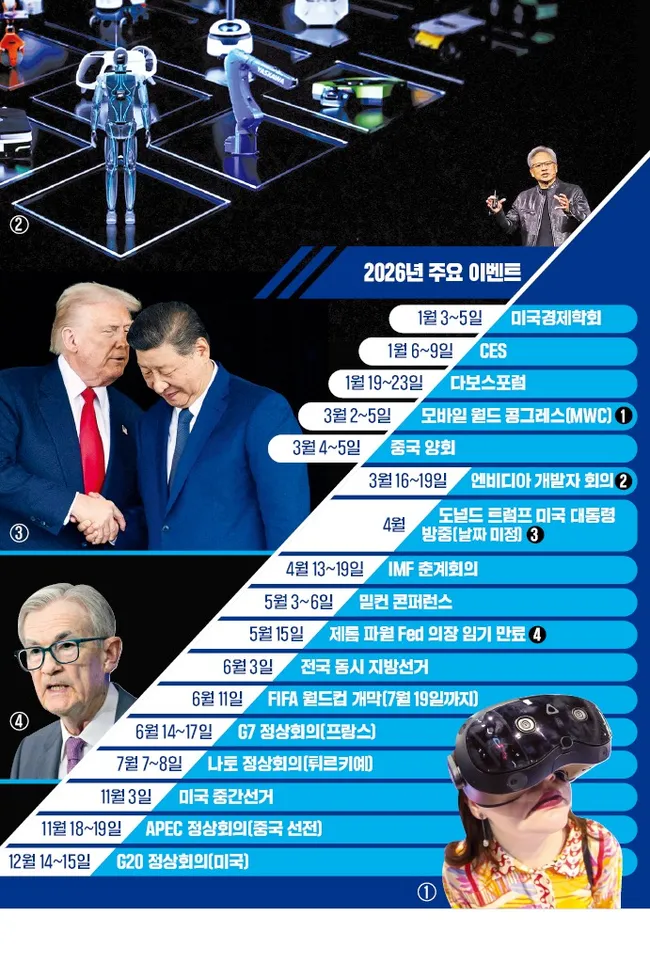 2026년 세계 경제는 Fed 의장 교체, 미·중 정상회담, 미국 중간선거 등 예측 불가능한 '빅 이벤트'들로 불확실성이 커질 전망이다.