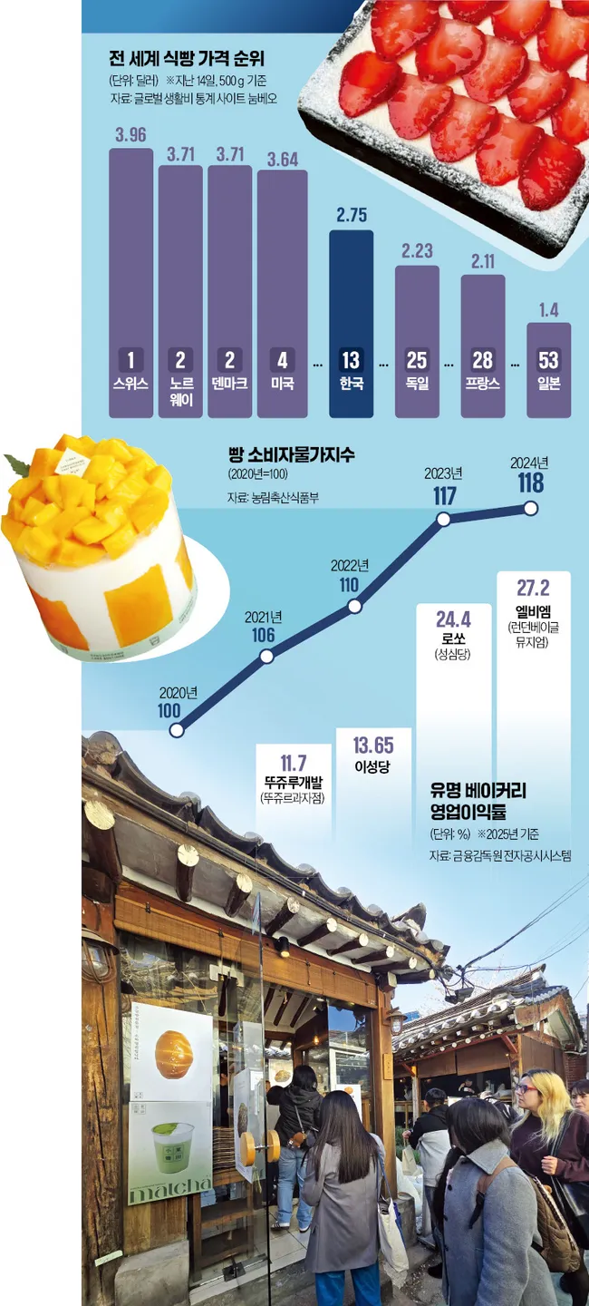 한국의 식빵 가격이 글로벌 평균보다 높고, 서울 카페의 케이크 한 조각이 2만원에 이르는 등 베이커리 가격이 유난히 비싼 상황이다.