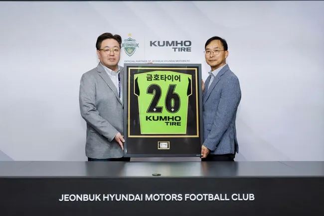 금호타이어가 1일 전주월드컵경기장에서 전북현대모터스와 공식 파트너십 연장 조인식을 진행했다. 2024년 체결한 계약을 2026시즌까지 연장하며 핵심 파트너 지위를 유지한다.
