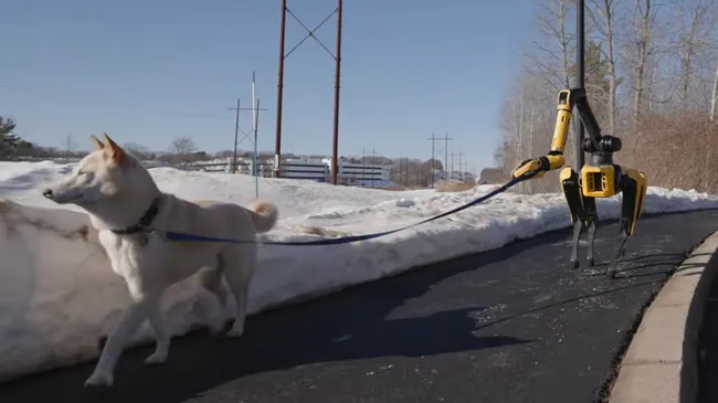 현대차그룹 계열사 보스턴다이내믹스는 14일 4족 보행 로봇 스팟이 명령을 인식해 반려견 산책과 청소 등을 수행하는 영상을 유튜브에 공개했다.