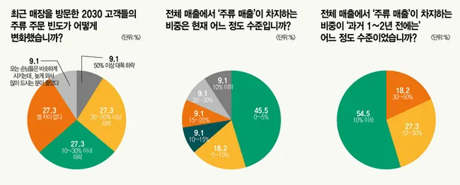 업계는 저도주와 논알코올 음료 개발, 반주 시장 활성화 등으로 생존 전략을 모색 중이다. 글로벌 무알코올 및 저알코올 시장은 130억달러 규모로 성장했으며, 소버 큐리어스는 일시적 현상이 아닌 시대적 대세로 자리매김할 것으로 전망된다.