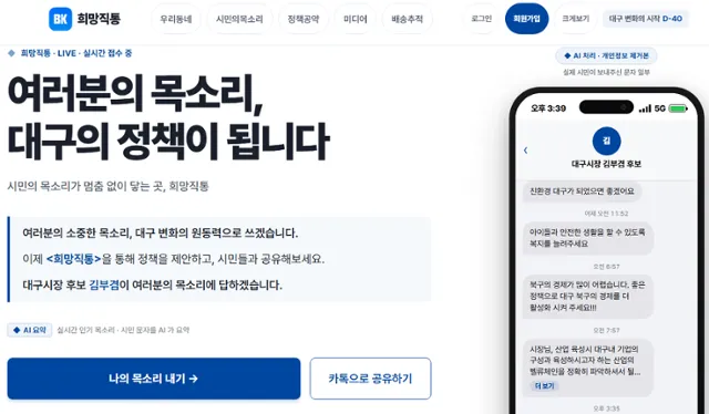 현재 베타버전으로 운영 중인 플랫폼은 향후 기능을 수정·보완해 정식 버전으로 출시될 예정이며, 주요 제안은 캠프의 공약에 반영될 것으로 보인다.