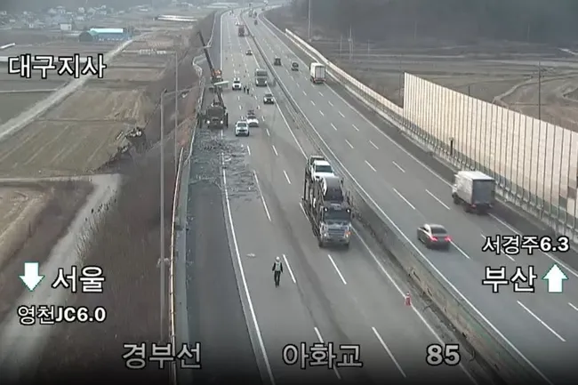 사고는 오전 5시 48분쯤 서울 방향 경부고속도로 서면 구간에서 발생했다. 경찰은 운전자와 목격자를 상대로 사고 경위를 조사 중이다.