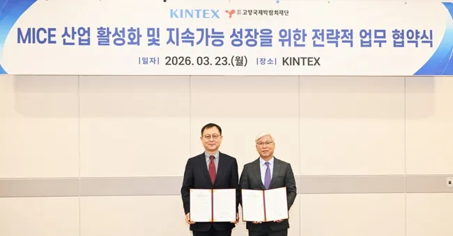 킨텍스와 고양국제박람회재단이 23일 MICE 산업 활성화를 위한 전략적 업무협약을 체결했다. 양 기관은 국내외 행사 공동 유치, 고양시 브랜드 마케팅, 지역 상권 연계 모델 구축에 나선다.
