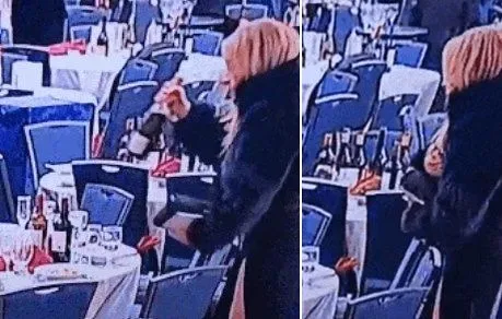 트럼프 대피하는 사이…만찬장 와인 쓸어 담은 ‘의문의 여성’