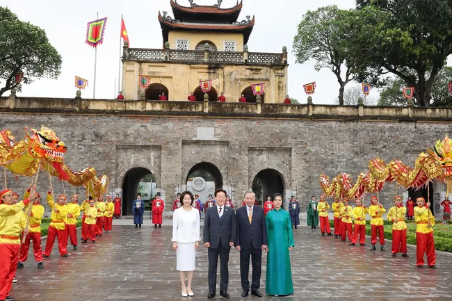 이재명 대통령이 24일 또럼 베트남 공산당 서기장과 탕롱황성에서 친교 일정을 끝으로 3박 4일 베트남 국빈방문을 마쳤다. 양 정상 부부는 베트남 전통 음악 공연을 관람하고 천년 동안 여러 왕조를 거치며 중국, 베트남, 프랑스 등 다양한 건축양식이 혼합된 유적지인 탕롱황성을 함께 둘러봤다.
