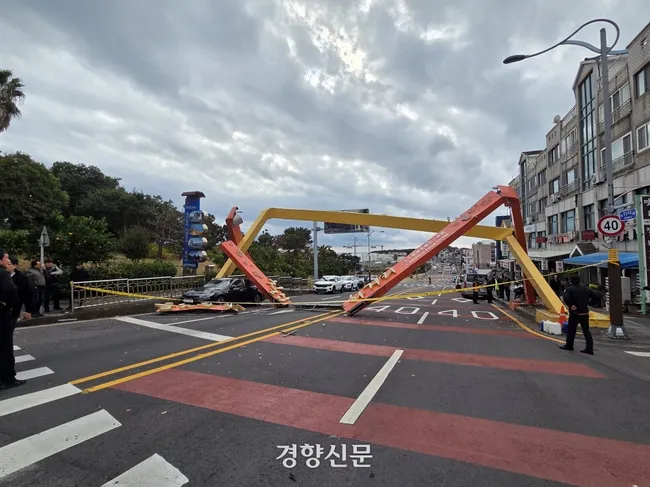 제주 서귀포 음식특화거리서 트럭이 아치 조형물 파괴