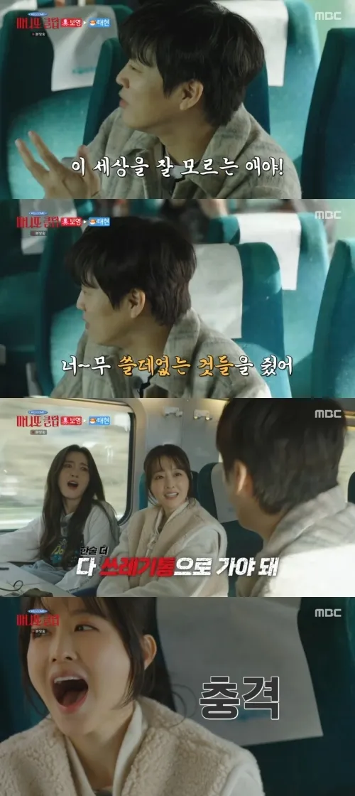 5일 방송된 MBC 신규 예능 '마니또 클럽'에서 차태현이 박보영을 향해 과격한 표현을 사용하며 불만을 드러냈다. 차태현은 "너무 쓸데없는 선물을 줬다. 다 쓰레기통으로 가야 한다"고 말해 박보영을 놀라게 했고, 박보영은 "왜 그 대사만 날 보면서 하는 거냐"며 당황한 표정을 지었다.