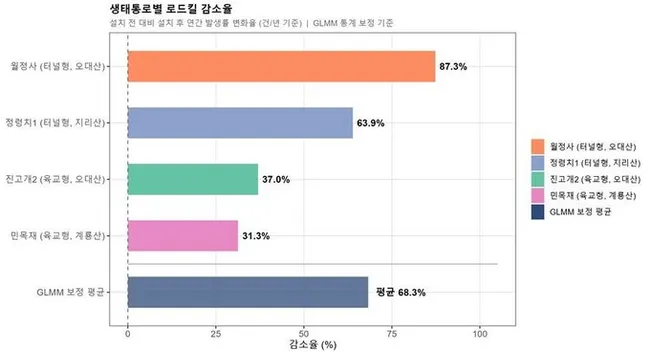 국립공원 생태통로, 동물 찻길 사고 18% 감소 효과 입증