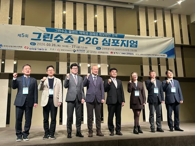 한국동서발전은 26~27일 동해시에서 제5회 그린수소 전력-가스 전환(P2G) 심포지엄을 개최한다고 밝혔다. 국내외 수소관련 연구기관·기업 약 200명이 참석해 재생에너지 확대에 따른 전력계통 불안정성 문제를 해결할 핵심 기술로서 P2G 기술의 역할과 활용 방안을 논의한다.