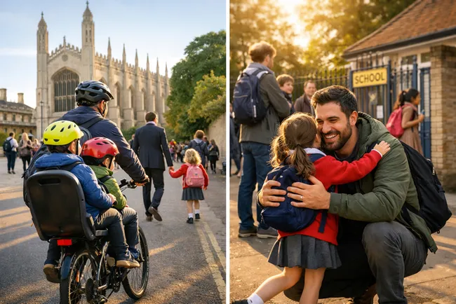 영국 케임브리지에서는 평일 오전 등교 시간과 오후 3시20분 하교 시간에 아빠들이 아이들을 데려다주는 모습이 흔하다. 한국에서는 상상하기 어려운 일인데, 이는 직장 문화와 통근 시간의 차이에서 비롯됐다.
