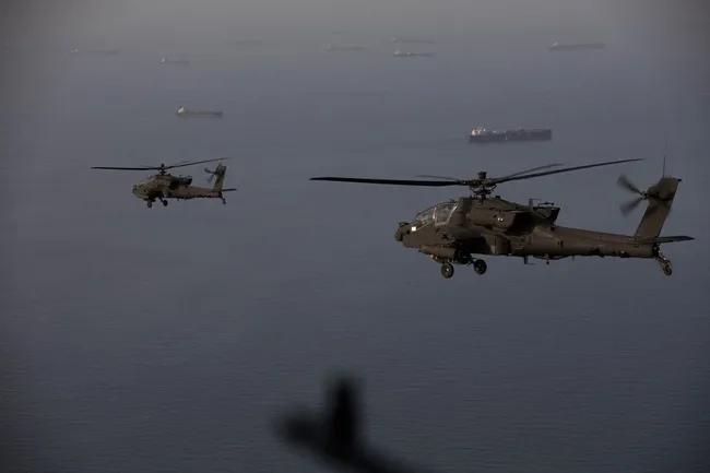 이란 이슬람혁명수비대가 18일 호르무즈해협 재봉쇄를 선언했다. 미 중부사령부는 전날 해협 상공을 순찰한 AH-64 아파치 헬기 사진을 공개하며 감시 활동을 지속하고 있다.