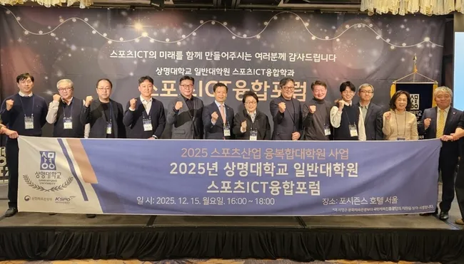 상명대 일반대학원 스포츠ICT융합학과가 12월 22일 서울 광화문 포시즌스 호텔에서 2025 스포츠ICT융합포럼을 개최했다. 문화체육관광부와 국민체육진흥공단이 후원한 이번 행사에는 약 120여명이 참석했다.