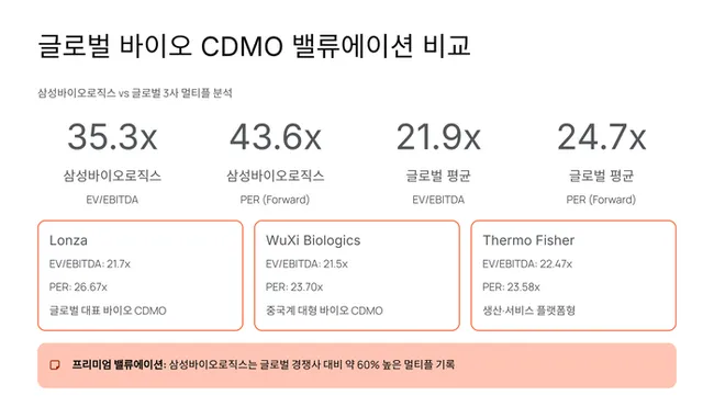 로직스는 반도체 공장과 유사한 구조로 가동률 상승이 이익 증대로 직결되며, 높은 마진율로 인해 배당 시작 가능성이 커지고 있다. 다만 글로벌 경쟁사 대비 고평가 논란이 있으며, PER 43.63배는 론자(26.67배), 우시바이오로직스(23.7배) 등을 크게 상회한다.