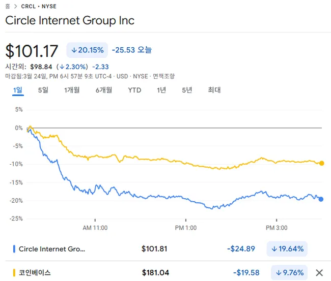 미국 클래리티 법안 추진으로 서클 주가 20% 폭락