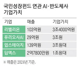 국민성장펀드가 투자처 찾기에 나서면서 AI·반도체 스타트업들의 기업가치가 빠르게 상승하고 있다. 리벨리온은 3조4000억원, 퓨리오사AI와 업스테이지는 3조원대의 기업가치를 인정받았지만 실적은 미미한 상태로 '몸값 인플레이션' 우려가 제기되고 있다.